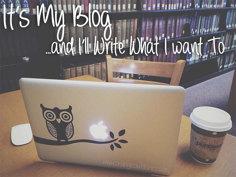 I, for one, needed to read this. I constantly struggle between what I WANT to write, and what I THINK I should write. Thanks for the reminder that it’s my blog, and I can do whatever I want with it! :)