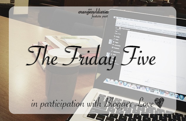Friday again! It’s been a while since I’ve done one of my Friday Five posts, seeing as my computer was down for a bit there and you know… the whole moving thing. My weeks have been tiring, even though I’m not doing any actual moving anymore. I think just the emotions that come with going through change, and the fact that for the first time in years I’m not going back to school for the fall… it’s just weird man.