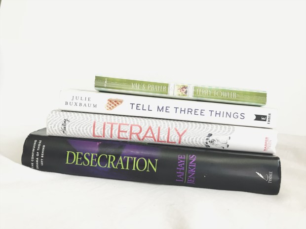 Four books, all good reads. I definitely recommend Literally and Tell Me Three Things to anyone who loves young-adult fiction, and I always recommend the Left Behind series.