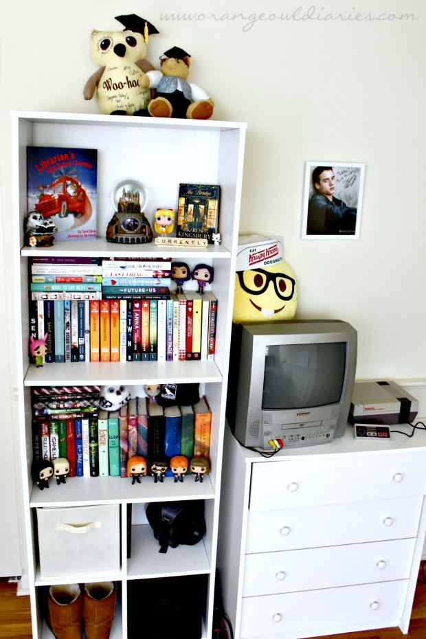 Not too much as changed in the past two years. I still have the same furniture, bed-set, photography light, etc. The only thing that’s really changed in my room is the new bookshelf and a few new items hanging around. On my dresser, instead of plain and simple now, I have a tiny little TV and a NES for when I get hit with nostalgia and want to play Super Mario Bros 3, Duck Hunt, or Dr. Mario.