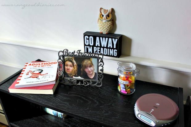 Then of course, my desk and other bookshelf. Only the arrangement of my items on top of each have changed and the bulletin board above my desk that wasn’t there before. It makes it easier for me to write notes and leave them there (like blog post ideas) and keep track of dates.
