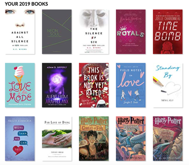 Out of these books, 24 were re-reads, so just about half of them. Obviously, the four Harry Potter books were a few of them to pull me out of my reading slump… then the other books that I reread were Time Bomb, Aliens From Arapholanx (a new edition of the book), my book Standing By, The Future of Us, Flipped, I Work at a Public Library, and the fourteen Private novels. Yes, that’s a lot of rereading, but most of them I hadn’t read in years.